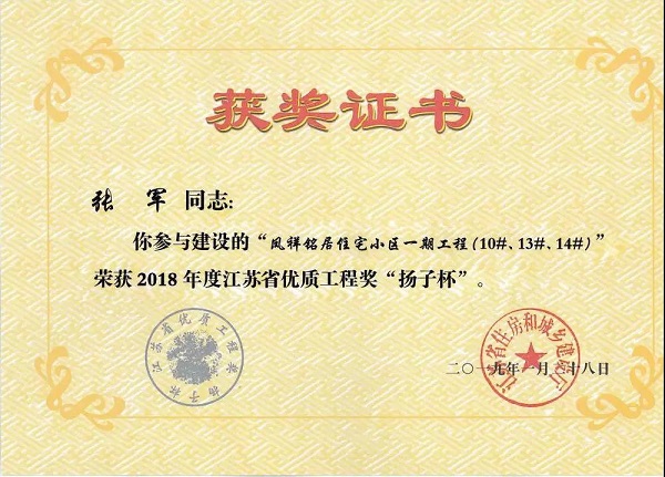此次獲獎(jiǎng)的是一期10、13、14號(hào)樓,該項(xiàng)目于2018年底完成“揚(yáng)子杯”優(yōu)質(zhì)工程獎(jiǎng)評(píng)審委員會(huì)現(xiàn)場(chǎng)復(fù)查工作。